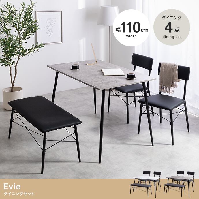 石目柄とブラックスチールを組み合わせた『Evie(エヴィ)』シリーズのダイニングセット